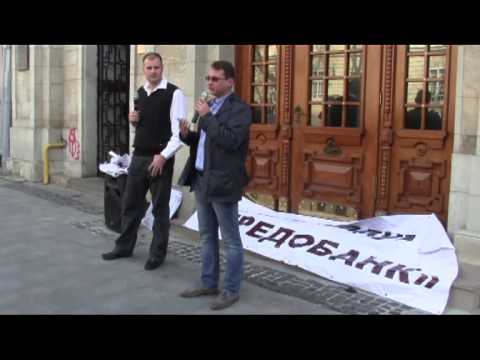 2. Пройшла жартівливо-сумна хода з труною (по-русски гроб), що символізувала з одного боку наші пропозиції стосовно останнього ребрендингу Кредобанку (концепція: «що б в Кредобанк не положив – то поховав»), а з іншого – поховання наших інвестицій в акції Кредобанку